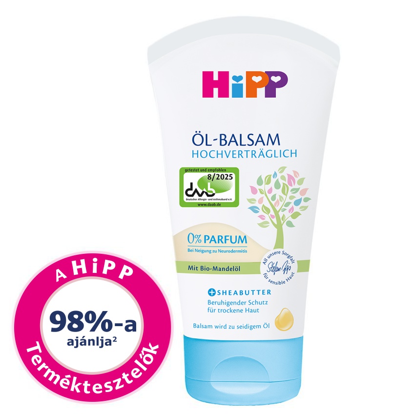 HiPP Olaj-balzsam különösen érzékeny bőrre, mely nyugtató védelmet nyújt a száraz bőr számára.